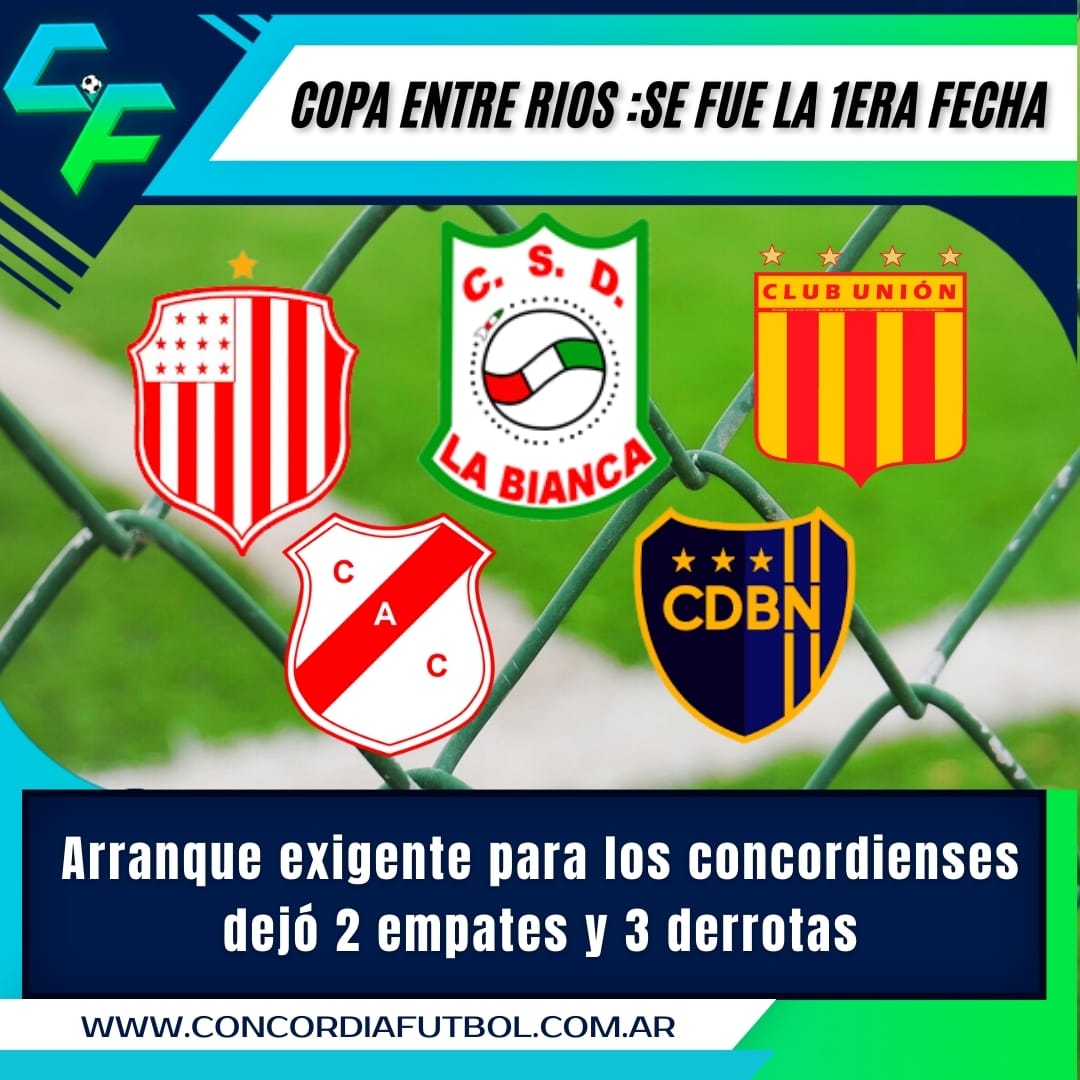 Finalizó la primera fecha de la Copa Entre Ríos y los representantes de Concordia tuvieron un inicio con dificultades.Libertad, Nebel, Colegiales, La Bianca y Unión afrontaron sus compromisos fuera de casa, con todo lo que implica el debut, los traslados y un contexto de planteles que aún están en proceso de armado.