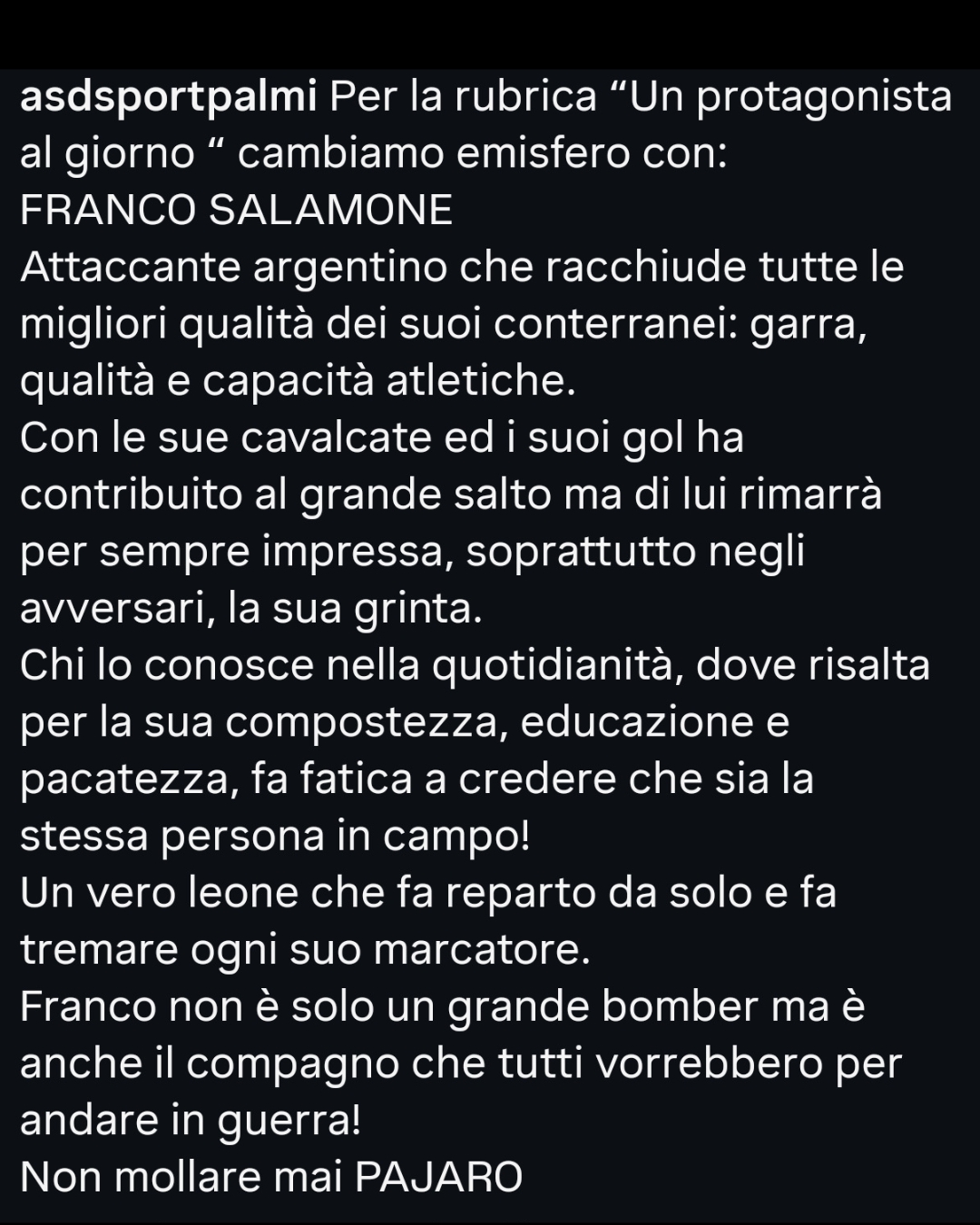 Dentro de ese contexto, Salamone fue destacado por el club en sus redes oficiales como “Protagonista del Día”, donde resaltaron su aporte dentro del equipo y su entrega en el campo de juego.