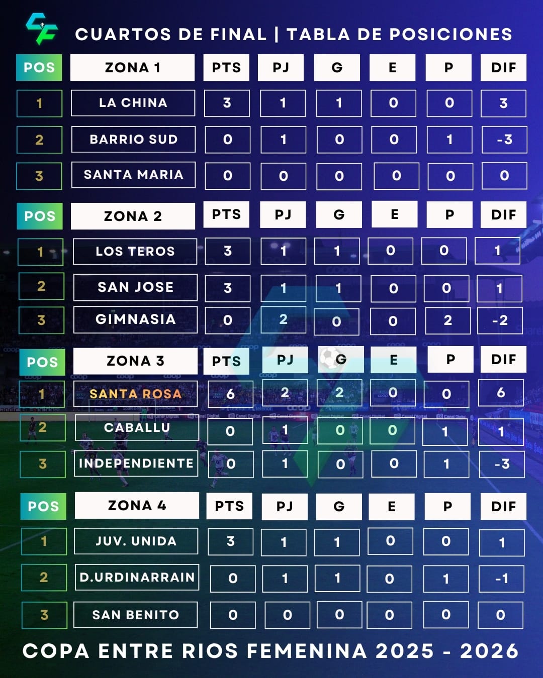 Con un eliminado, un clasificado y varias zonas aún abiertas, la Copa Entre Ríos Femenina empieza a definir su rumbo, mientras Santa María inicia su participación en un contexto donde cada resultado comienza a ser determinante.