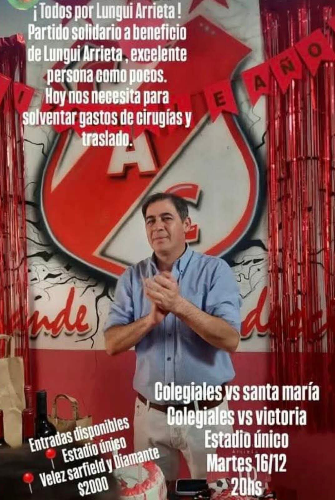 La iniciativa surgió desde el propio ambiente del fútbol concordiense, donde contará con la participación del Club Atlético Colegiales, C.A Victoria, Santa María de Oro F.C. y combinado.El encuentro comenzará a las 20 horas y tendrá un valor de entrada de 2.000 pesos, con el objetivo de facilitar la asistencia del público y recaudar fondos para acompañar la situación de Arrieta.