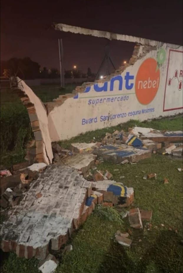 Las intensas lluvias que se registraron durante toda la jornada del sábado en la ciudad provocaron distintos inconvenientes, y en horas de la tarde se produjo la caída de parte del muro perimetral del predio del Club Defensores de Nebel, sobre el sector que da a la vía pública.